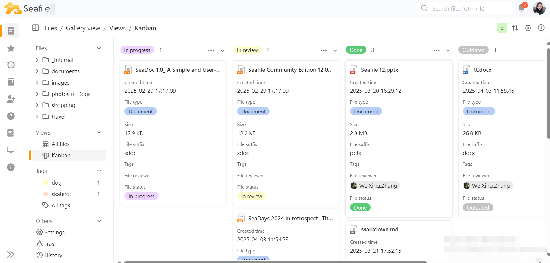 The Kanban view in Seafile is an intuitive and efficient tool for managing your projects.