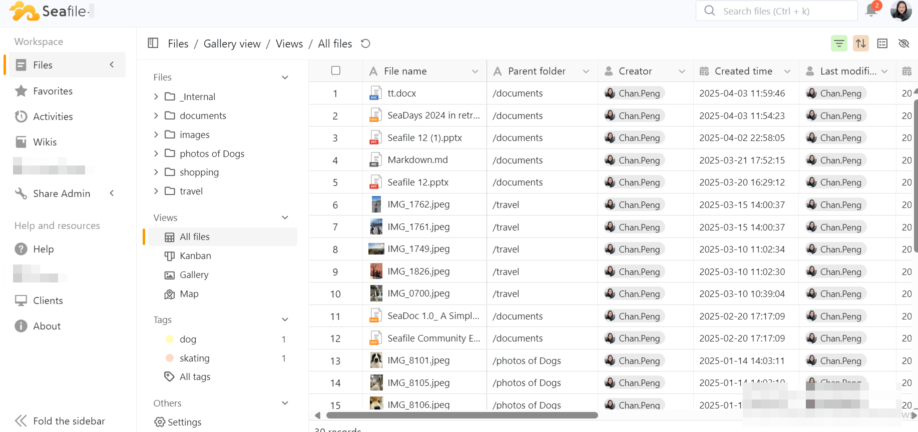 Seafile currently supports four views: table view, kanban view, map view, and gallery view.