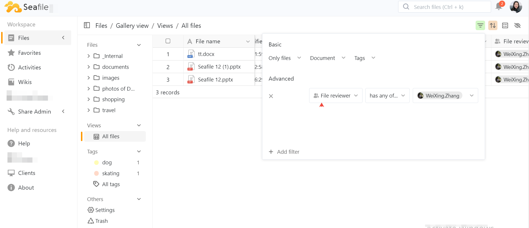 Users can filter the displayed files based on various criteria: